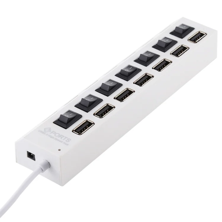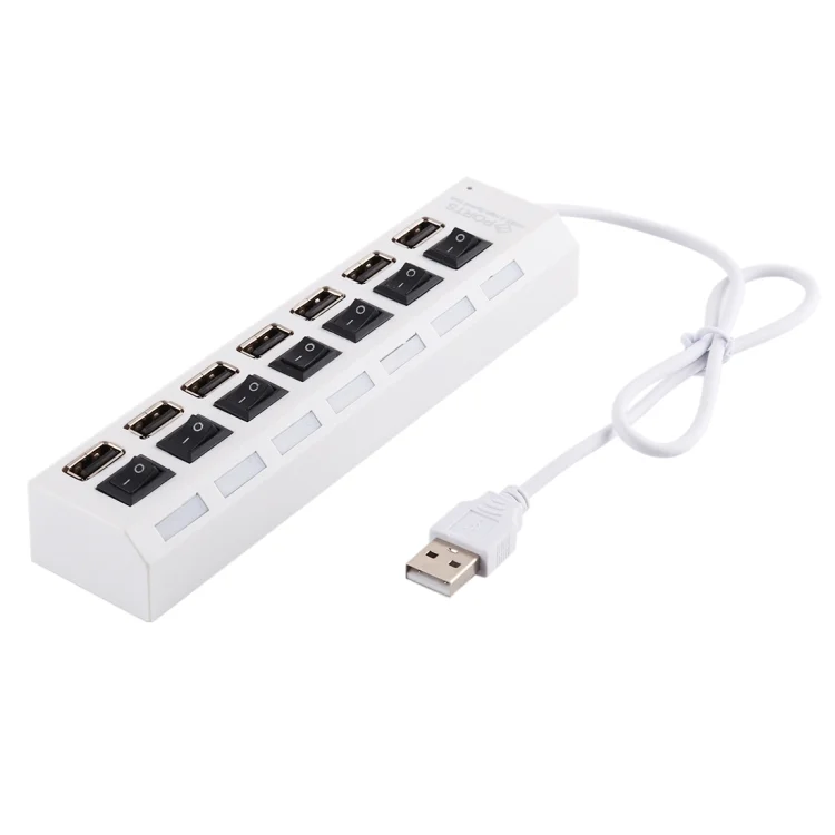 7 Ports USB Hub 2.0 USB Splitter High Speed 480Mbps with ON/OFF Switch / 7 LEDs