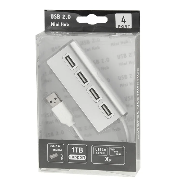 High Speed 480Mbps 4 Ports USB 2.0 HUB Mini Aluminum USB Splitter