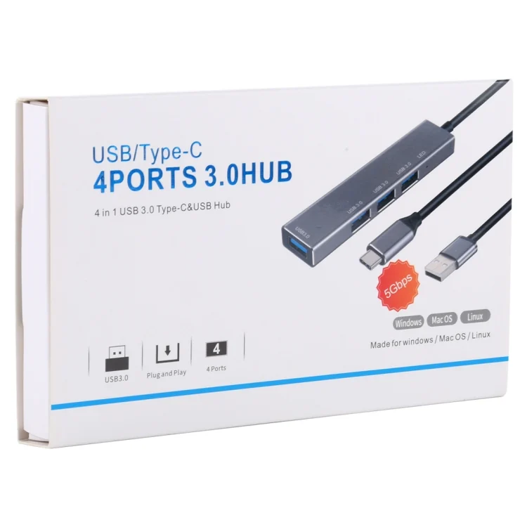 U-811 4 in 1 USB 3.0 to 3 USB 3.0 + USB-C / Type-C Ports HUB Docking Station