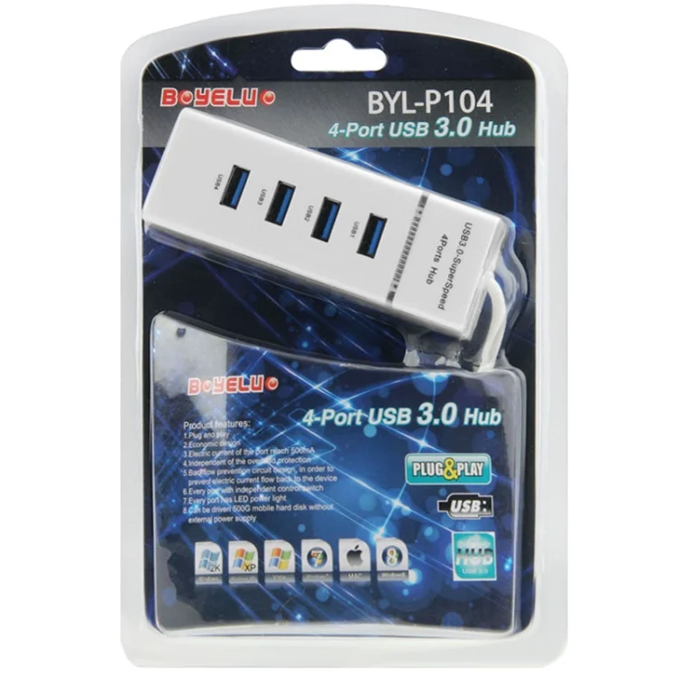 4 Ports USB 3.0 Hub Splitter with LED, Super Speed 5Gbps, BYL-P104