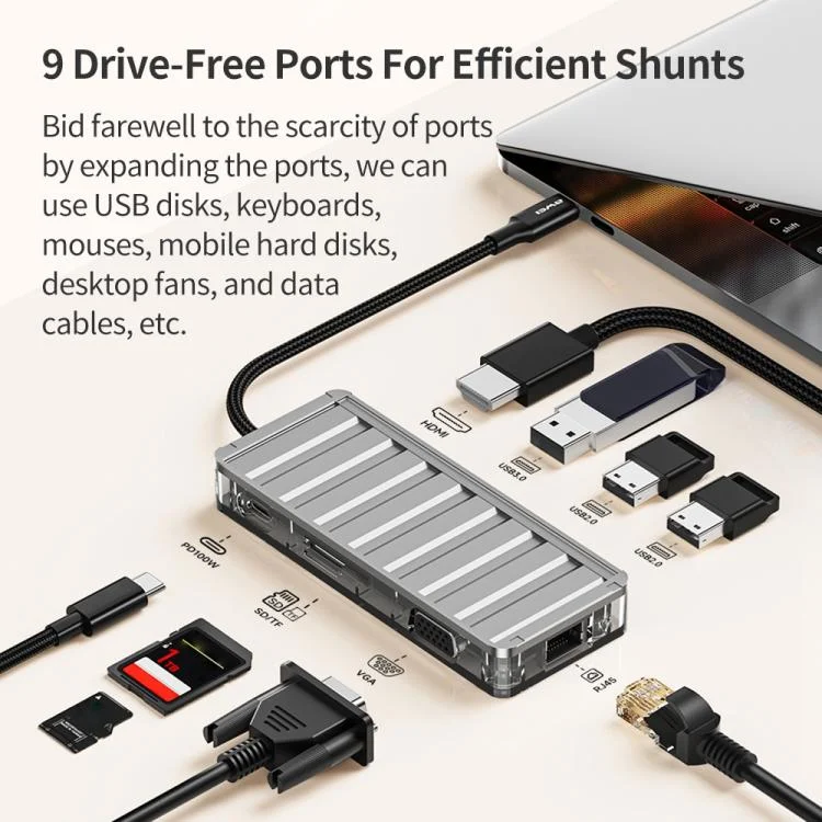 awei HUB-3 Multi-function 9 in 1 Type-C HUB Adapter