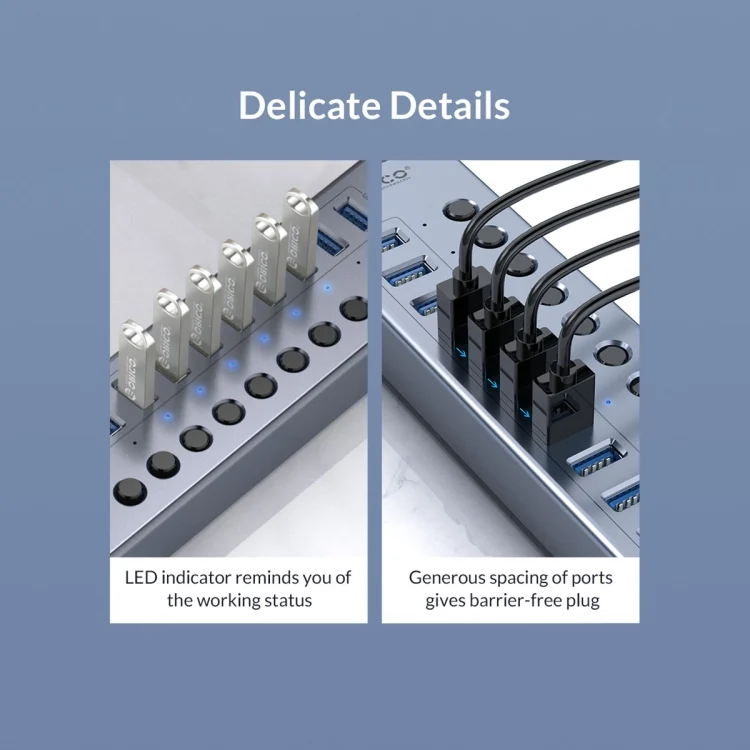 ORICO BT2U3-10AB-GY-BP 10 Ports USB 3.0 HUB with Individual Switches