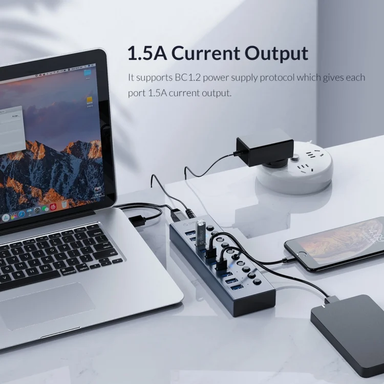 ORICO BT2U3-7AB-GY-BP 7 Ports USB 3.0 HUB with Individual Switches
