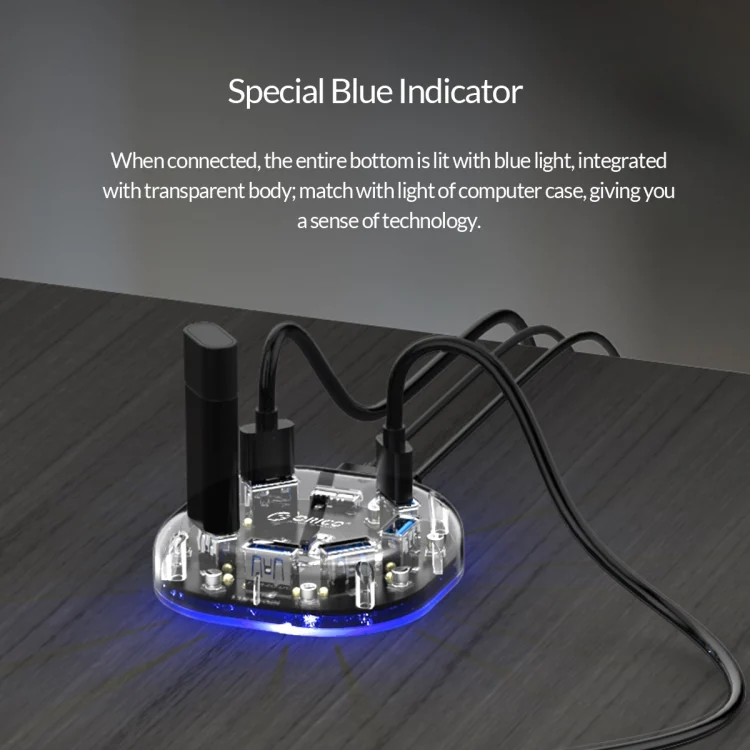 Transparent series hub with blue light indicator light vertical plug-in design is compact and convenient