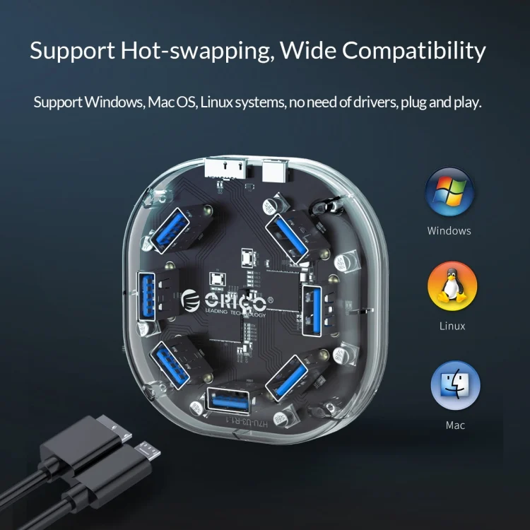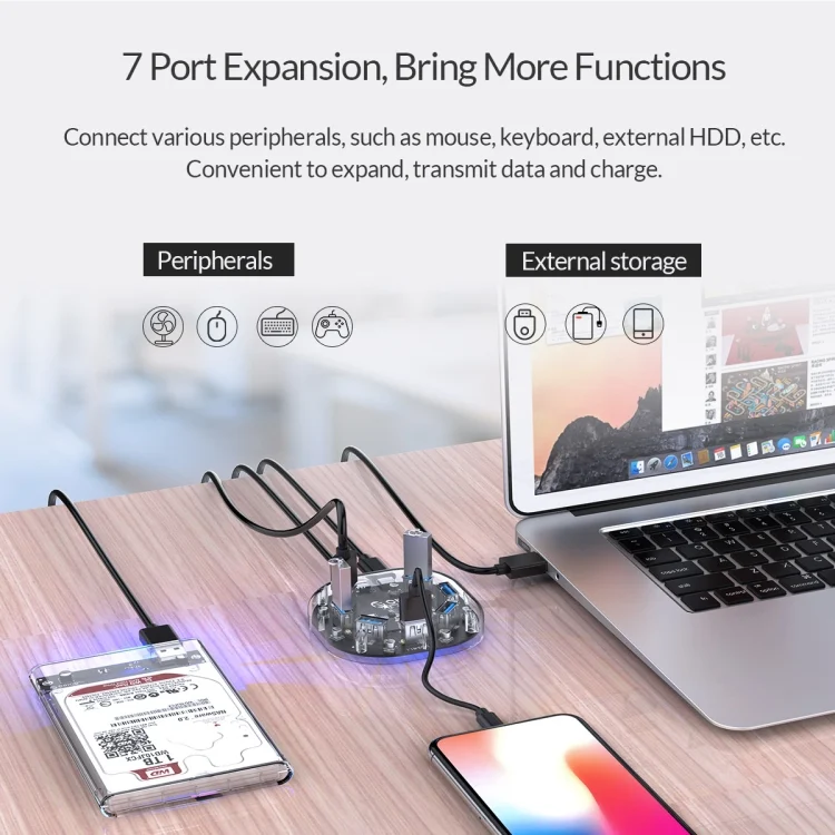 ORICO H7U-U3 7 Port USB3.0 Transparent HUB