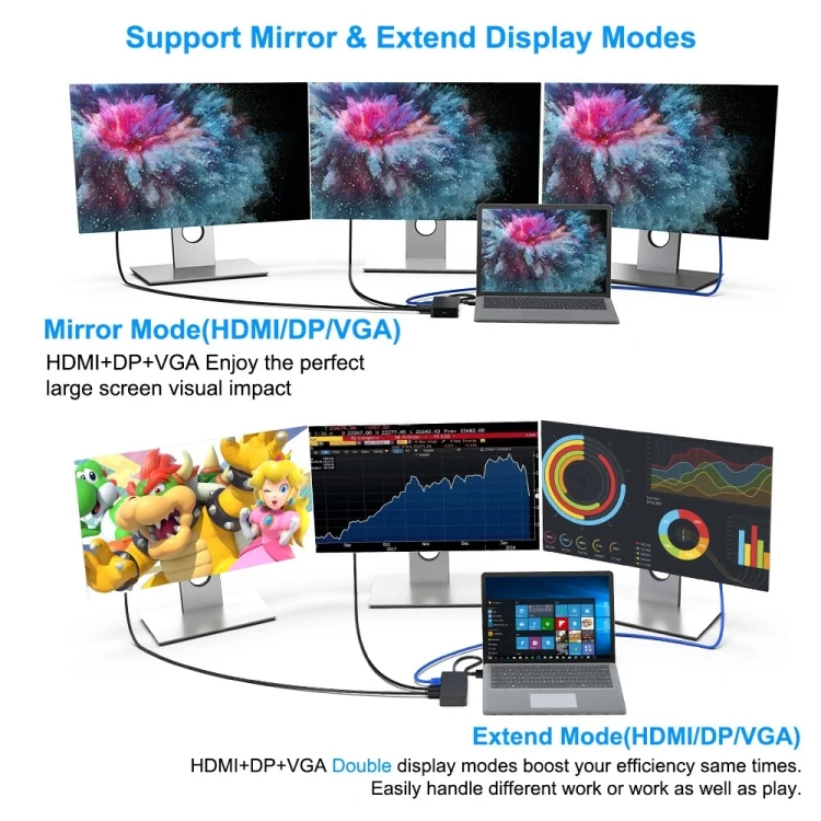 1. Output interface: RJ45, DP, HDMI, VGA, 3 USB3.0, USB-C3.1, 3.5mm audio-out, SD/TF card slot