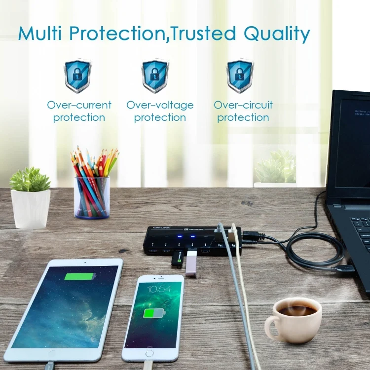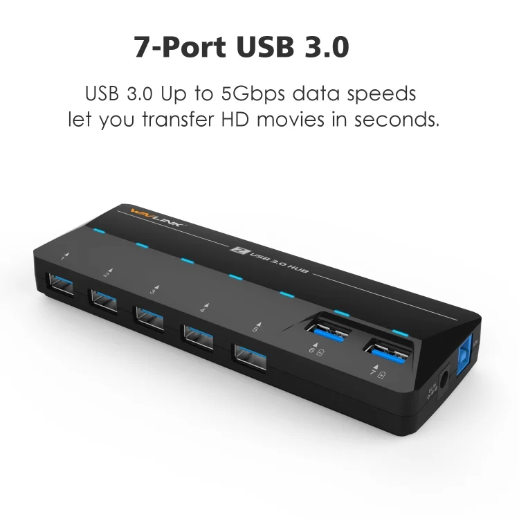 WAVLINK WL-UH3073D USB3.0 HUB Adapter 7-Port Docking Station with Individual Switch