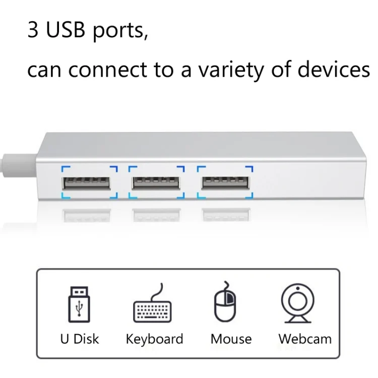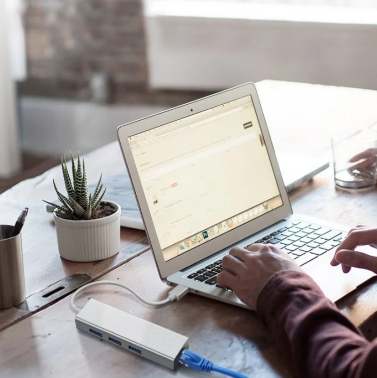YH-U1009 3 x USB 3.0 + RJ45 to USB 3.0 External Drive-Free HUB for Laptops, Random Color Delivery