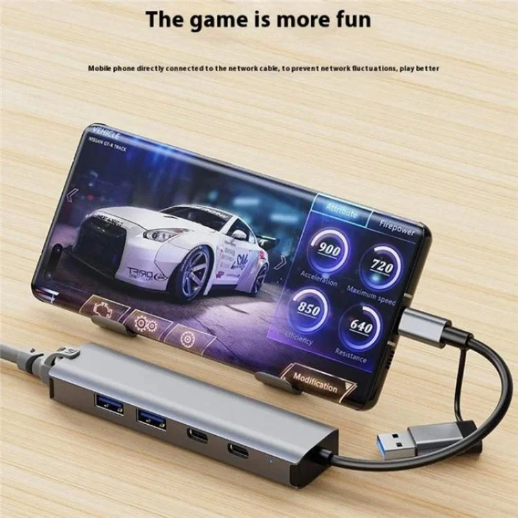 2503 Gigabit RJ45, 2 x USB3.2, USB-C2.0, USB-C3.2, DC5V 6 in 1 Docking Station USB / Type-C Hub