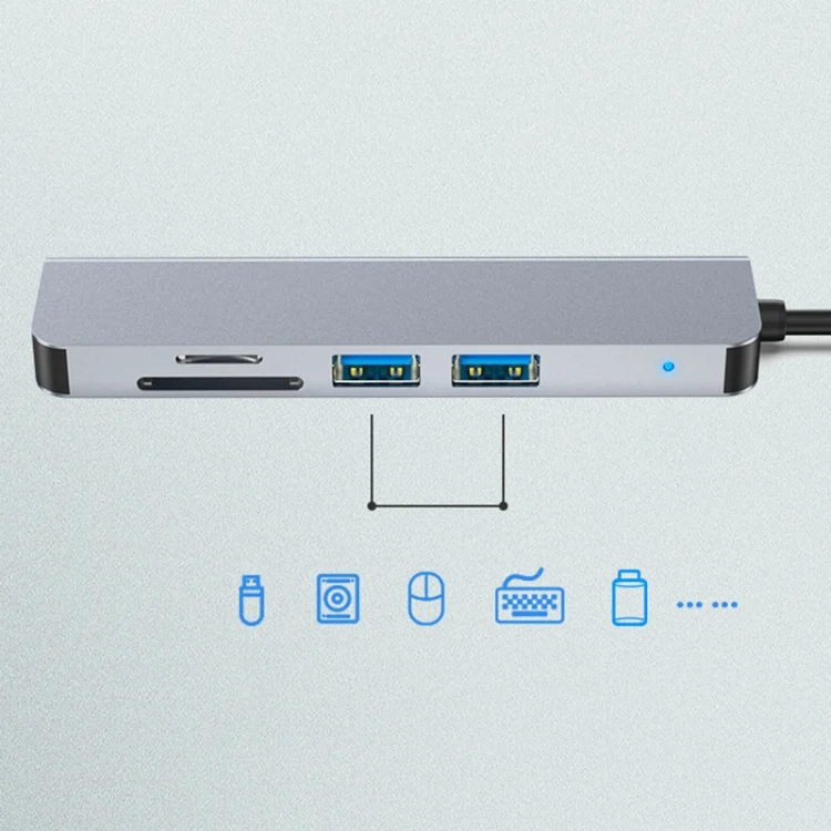 5 in 1 USB-C / Type-C to 4K HDMI + SD / TF Card Slot + USB 2.0 + USB 3.0 Multifunctional Docking Station HUB