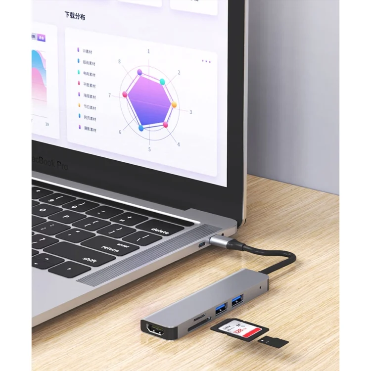 Blueendless 6 In 1 Multi-function Type-C / USB-C HUB Expansion Dock M.2 NGFF Solid State Drive