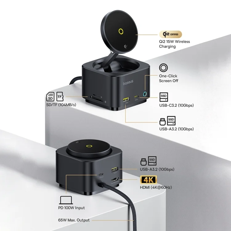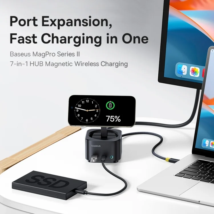 Baseus MagPro Series II 7 in 1 HUB Docking Station Magnetic Wireless Charger 15W