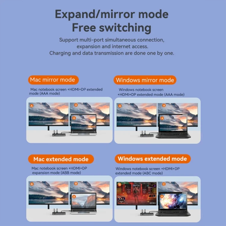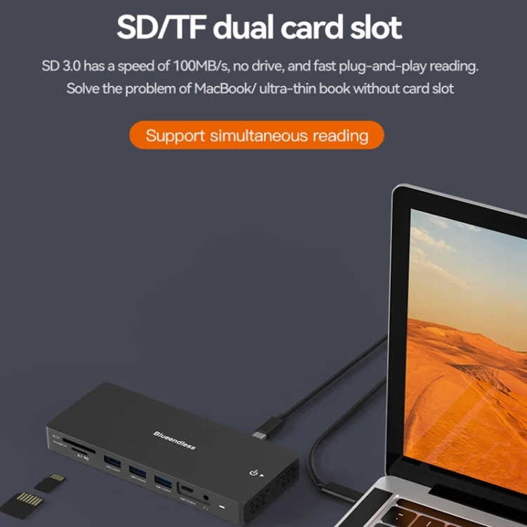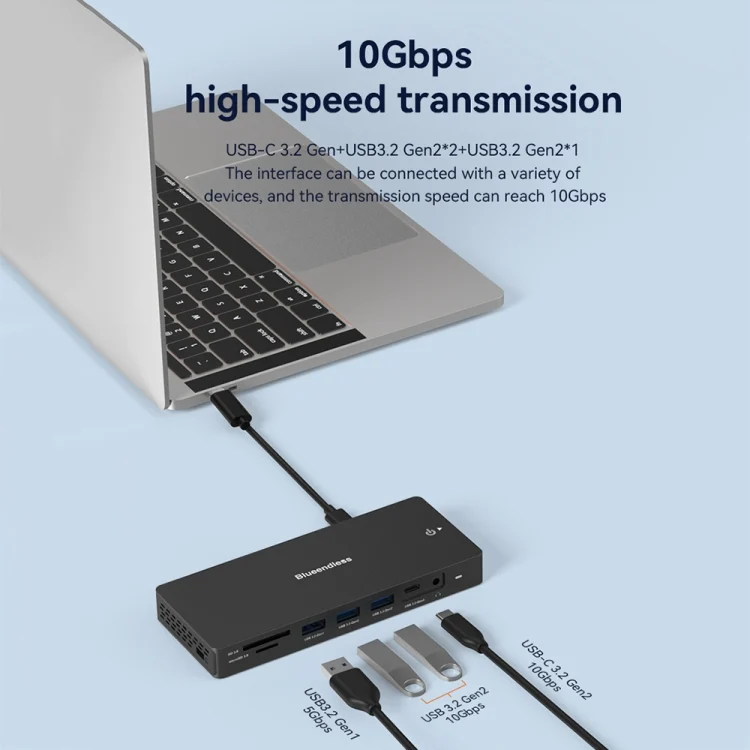 Blueendless 12-In-1 HD Multifunctional Docking Station 10Gbps Splitter With Switch