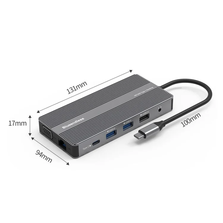 Blueendless Type-C+USB 3.0/2.0+VGA+3.5mm Audio Interface HUB