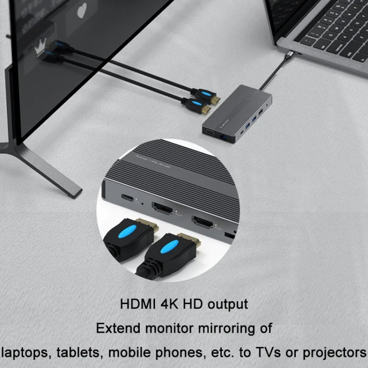 2. HDMI 4K high-definition output, extend the display mirroring of laptops, tablets, mobile phones, etc. to TVs or projectors