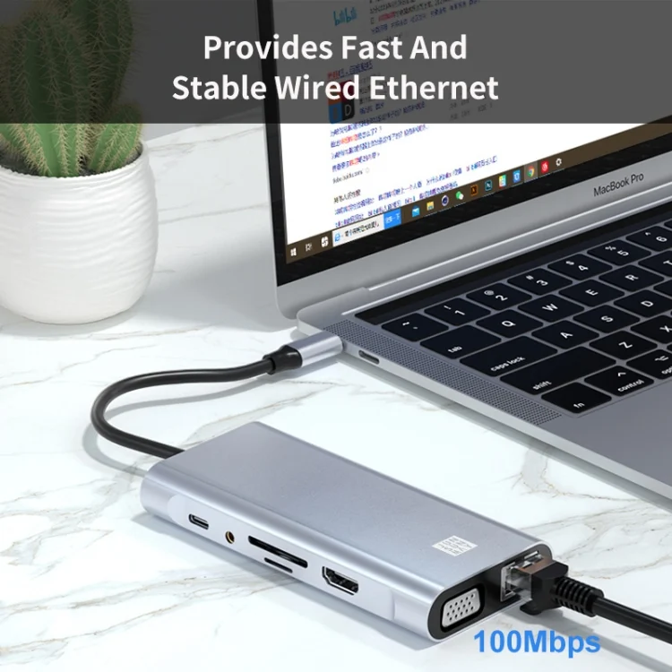 6. Stable and faster wired network: USB-C to RJ45 100M ethernet port supports 100M ethernet, backwards compatible with 10Mbps RJ45 LAN.
