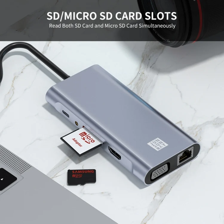 JUNSUNMAY 11 in 1 Type-C to 4K HDMI + VGA +RJ45 Docking Station Adapter PD Quick Charge Hub