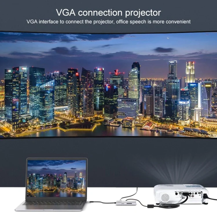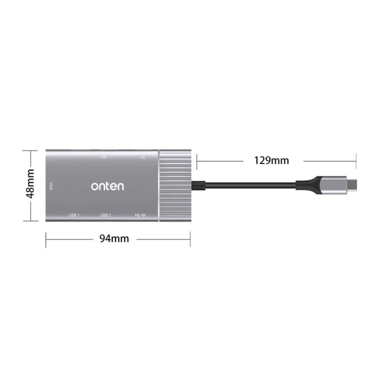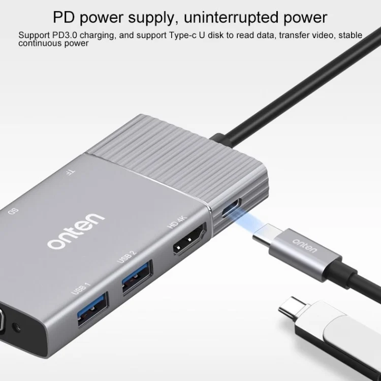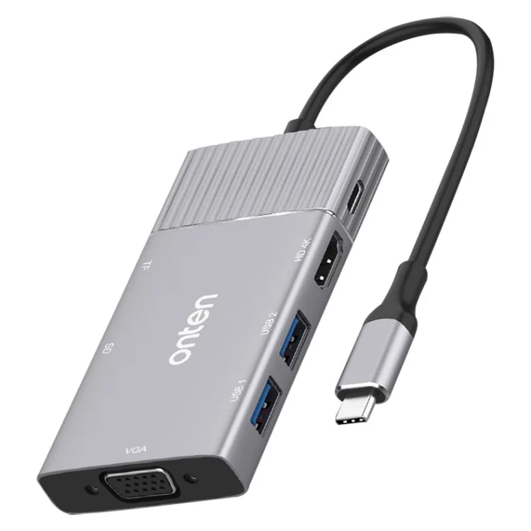 Onten 95113 8 In 1 USB 3.0 x2 + SD / TF + HDMI / VGA + 3.5mm Jack + Type-C / USB-C (PD 3.0) Multi-function HUB Converter Dock Station