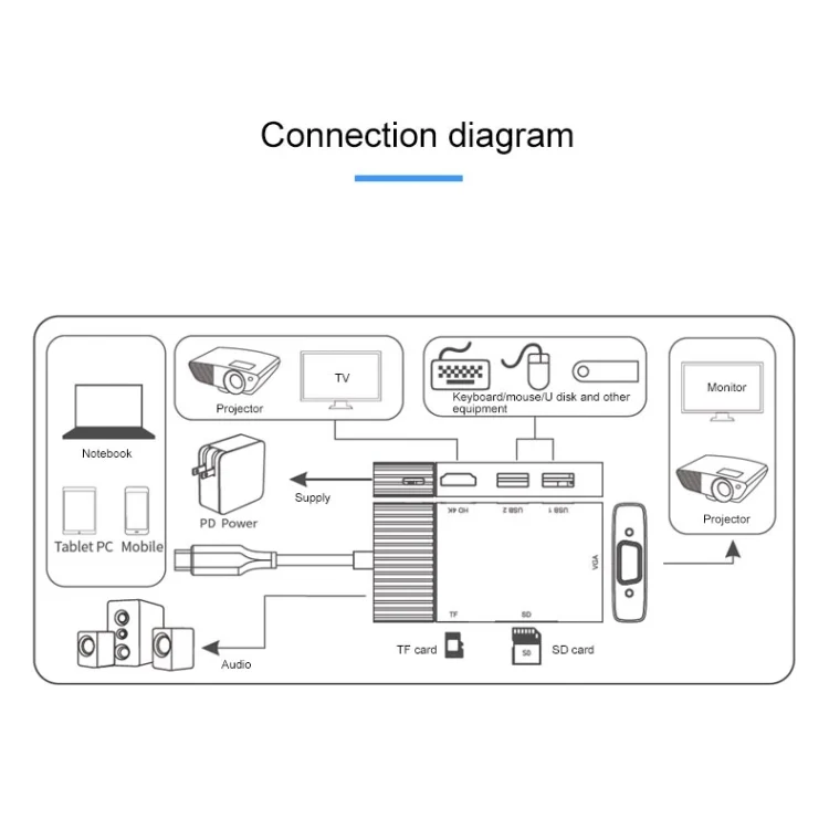 7. SD/TF dual card slot, support mobile phone memory card, camera card reading at the same time