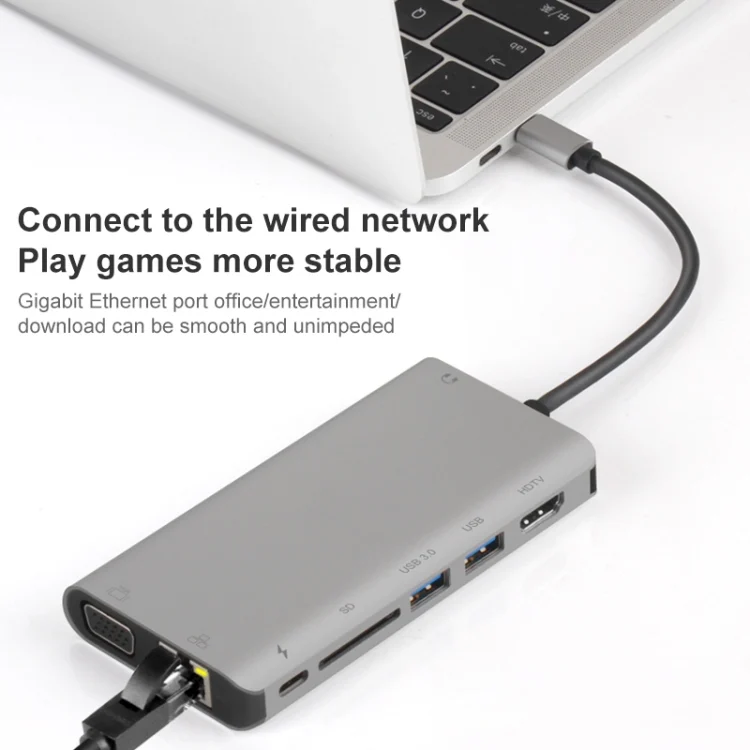 Onten 9591BD 8 in 1 USB-C / Type-C to PD USB-C / Type-C Charging + Gigabit Ethernet + Dual USB 3.0 + HDMI + VGA + SD Card Slot + 3.5mm AUX HUB