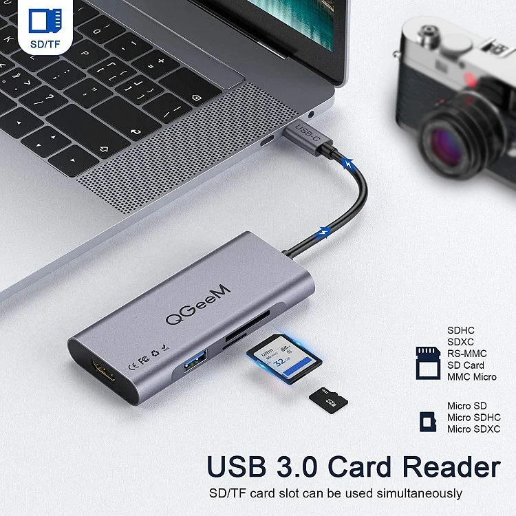 QGeeM 7 In 1 Multifunctional USB3.0 TYPE-C Extension HUB Adapter