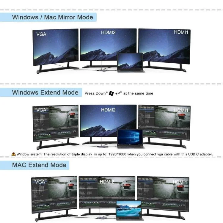 –Mirror/Extend Mode: Switch between mirroring your laptop screen or extending displays across OS (Windows/macOS).