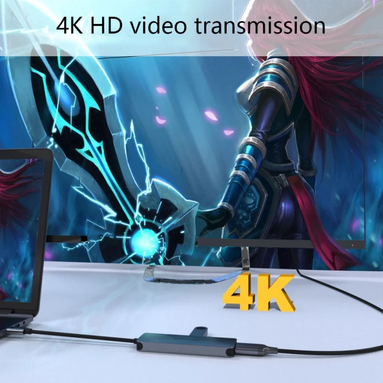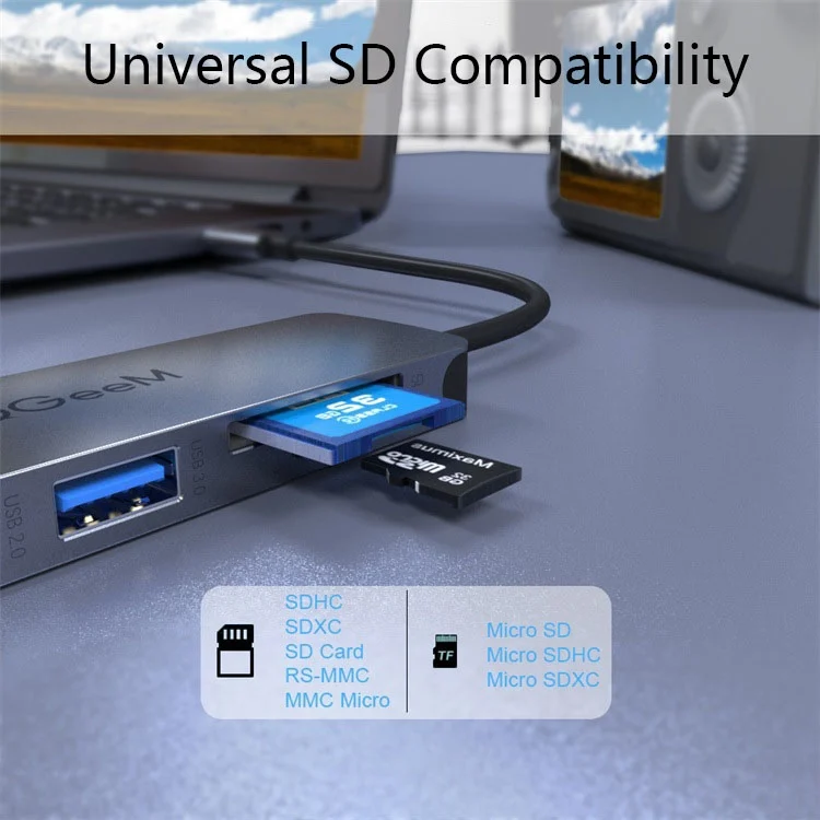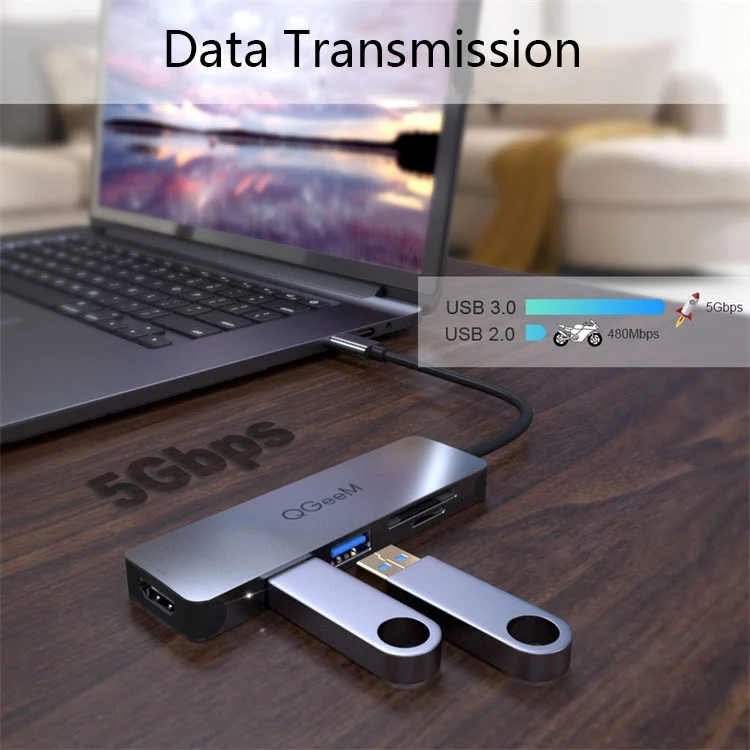 QGeeM QG-UH05-4 5 In 1 TYPE-C Extension HUB Adapter Compatible with SD/TF Reader