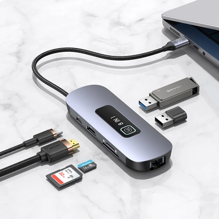 USAMS US-SJ643 PD100W 8 in 1 Aluminum Alloy Multifunctional Type-C HUB with Light