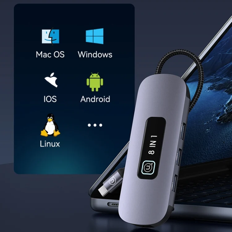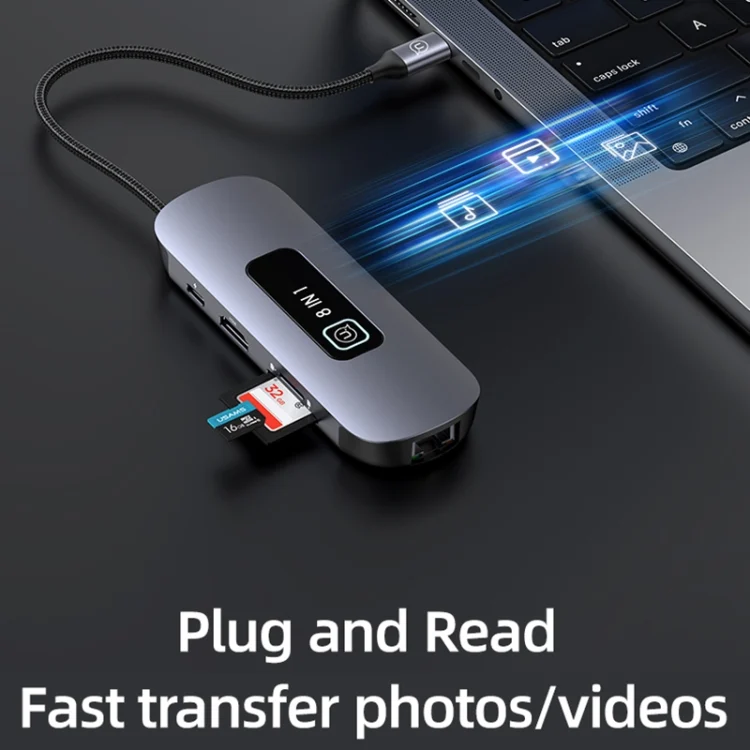 1. 8 interfaces: USB3.0x3, SD card slot x1, TF card slot x1, Type-Cx1, HDMIx1, RJ45x1