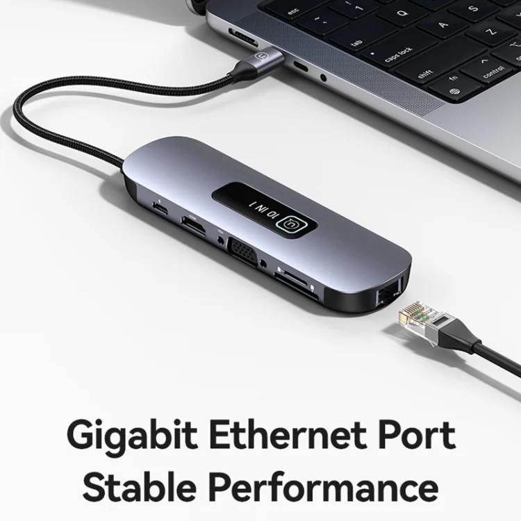 USAMS US-SJ644 PD100W 10 in 1 Aluminum Alloy Multifunctional Type-C HUB with Light