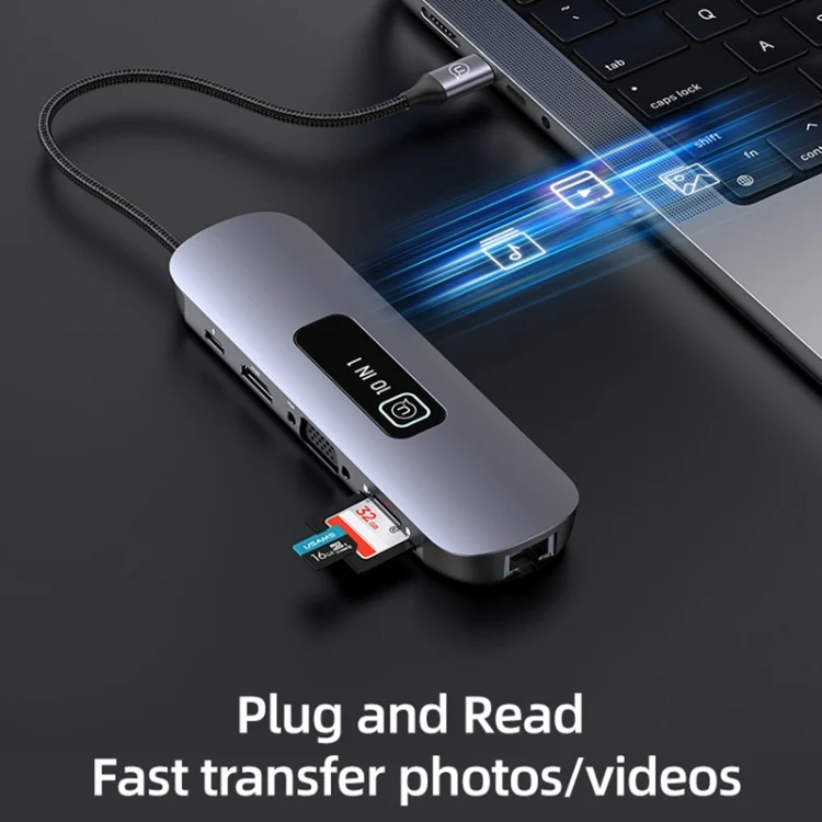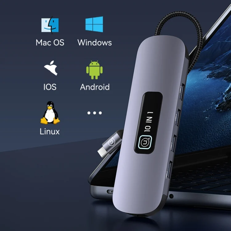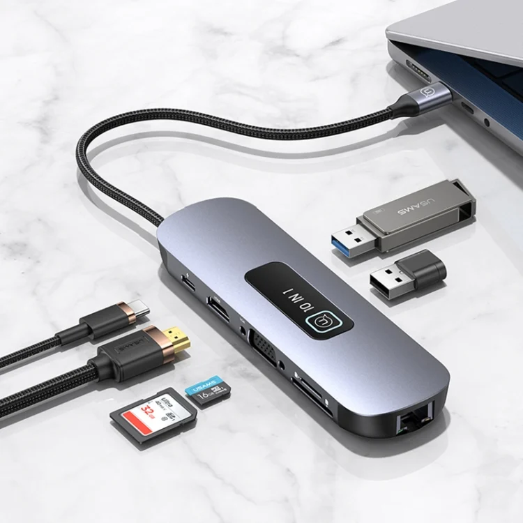 USAMS US-SJ644 PD100W 10 in 1 Aluminum Alloy Multifunctional Type-C HUB with Light