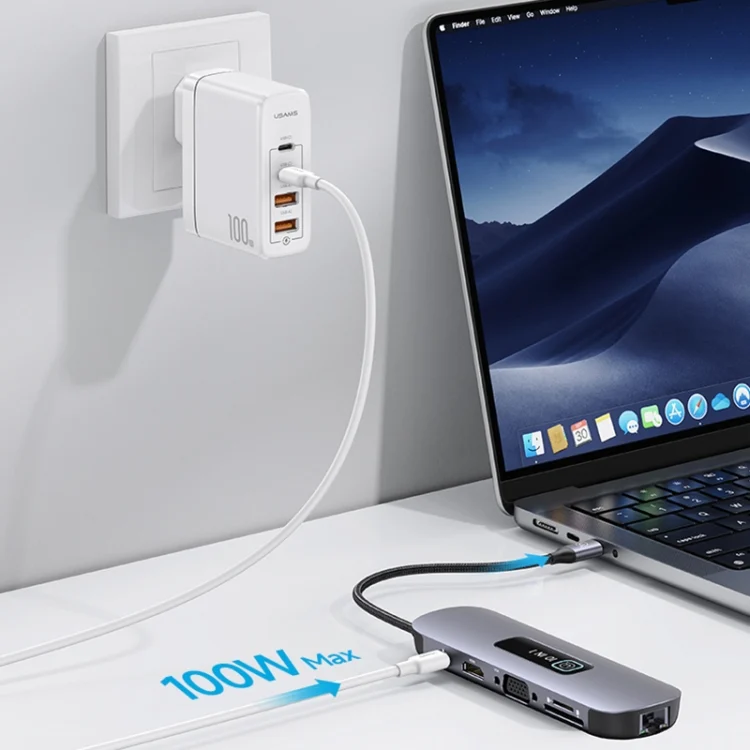 USAMS US-SJ643 PD100W 8 in 1 Aluminum Alloy Multifunctional Type-C HUB with Light