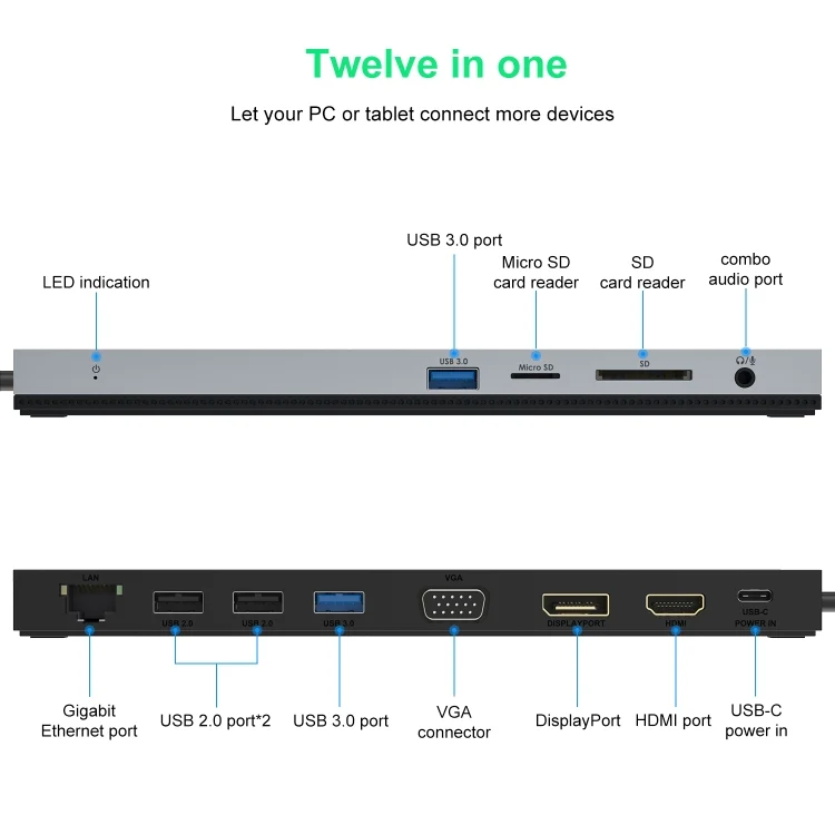 Wavlink UMD03 Triple Display Adapter Type-C Hub 12 in 1 Docking Station