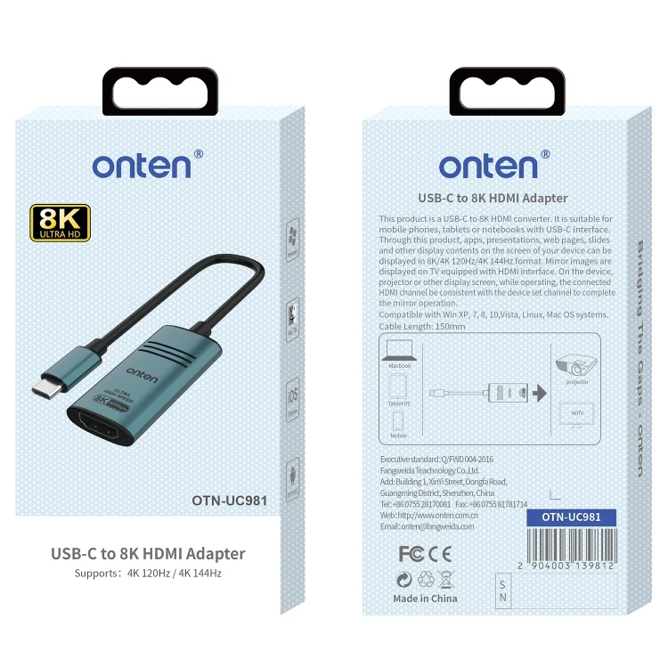 Onten UC981 8K 30Hz USB-C / Type-C to HDMI Video Converter Adapter