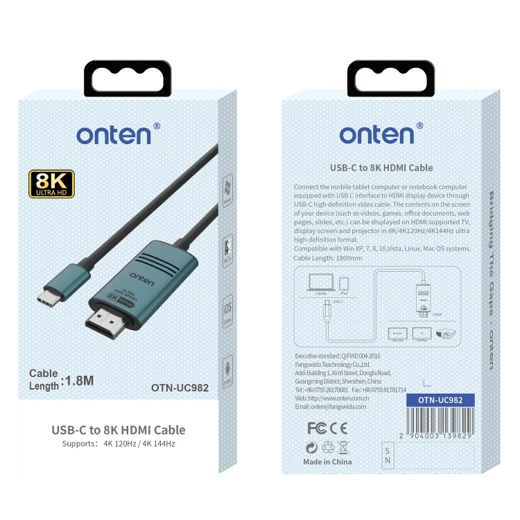 Onten UC982 8K 60Hz USB-C / Type-C to HDMI Video HD Conversion Cable