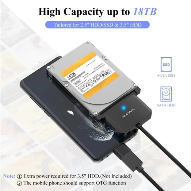 4. Wide Compatibility: Compatible with most 2.5-inch or 3.5-inch SATA III/II/I HDDs and SSDs up to 18TB, supporting USB-A enabled devices.