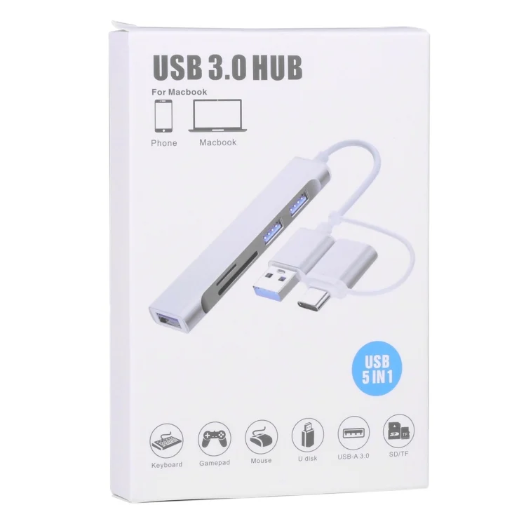 A-807 5 in 1 USB 3.0 and Type-C / USB-C to USB 3.0 HUB Adapter Card Reader