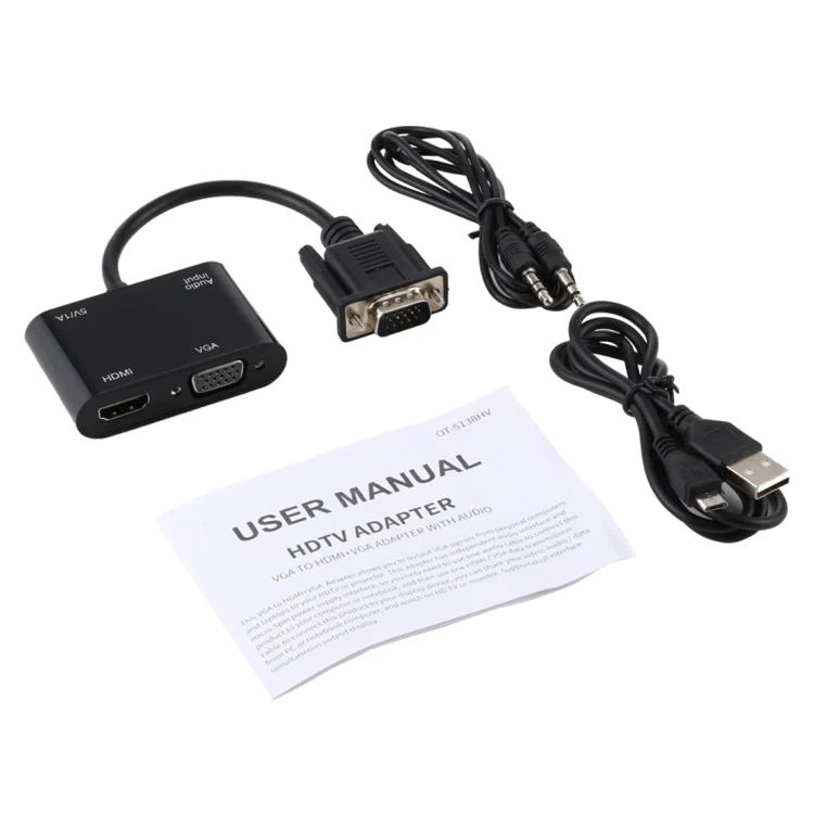 2 in 1 VGA to HDMI + VGA 15 Pin HDTV Adapter Converter with Audio