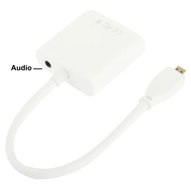 22cm Full HD 1080P Micro HDMI Male to VGA Female Video Adapter Cable with Audio Cable(White)