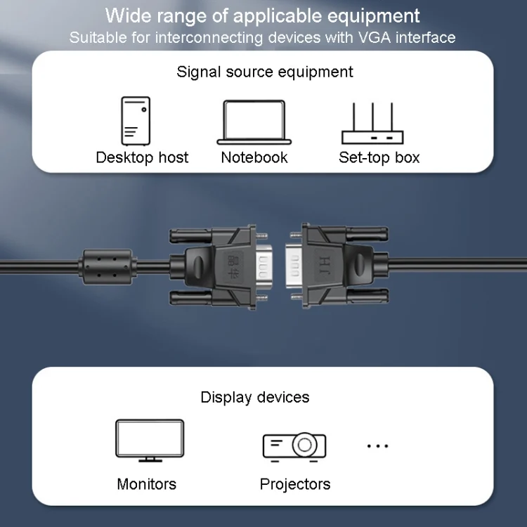 6. Wide range of applicable equipment, suitable for interconnection of equipment with VGA interface, signal source equipment: desktop hosts, notebooks, set-top boxes, display devices: monitors, projectors and so on