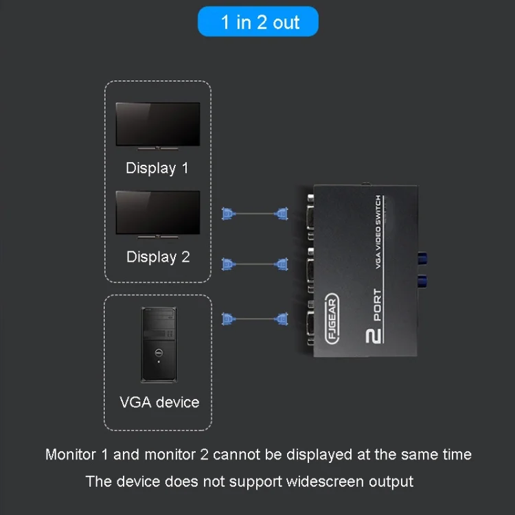 FJGEAR FJ-15-2 Computer VGA Switcher 2 In 1 Out Bidirectional Switching Sharer