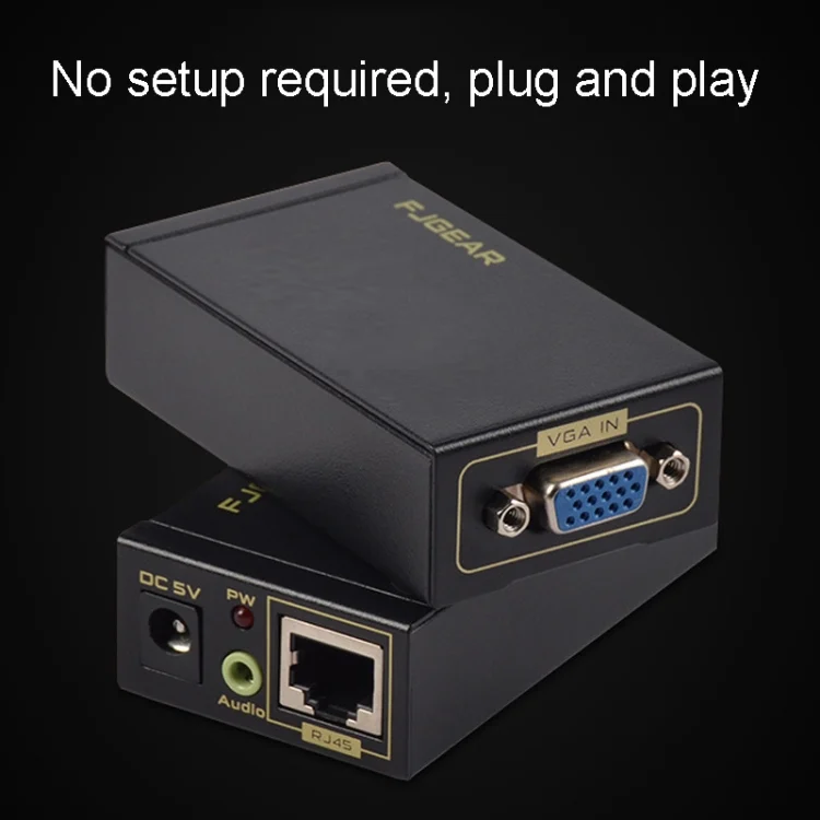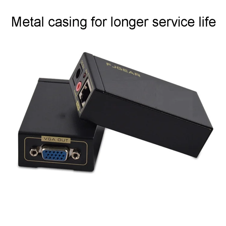 FJGEAR FJ-VEA100 2 In 1 Extender VGA To RJ45 Signal Single Cable Extension With Audio, EU Plug