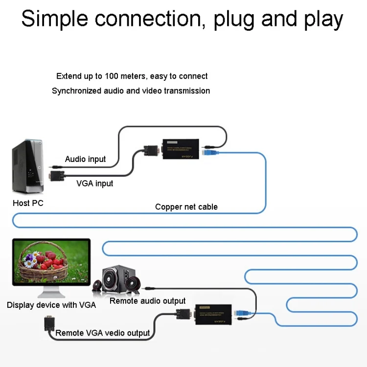 5. Simple connection, plug and play, can transmit 100 meters distance through the super category 5 / category 6 cable (need pure copper 8 cores) single line