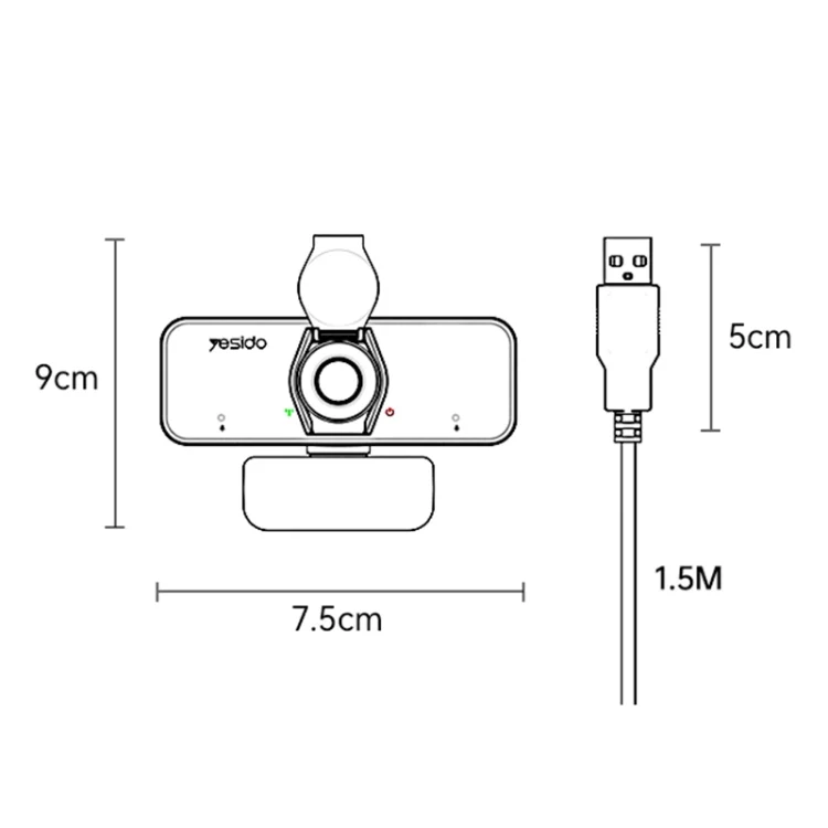 Yesido KM13 1080P 2.0MP USB Webcam, Cable Length 1.5m