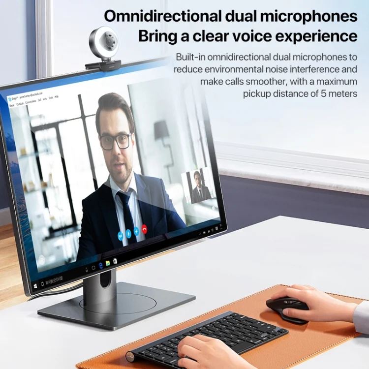 Yesido KM20 2K Zoom 4.0MP HD USB Webcam, Cable Length 1.5m with Fill Light