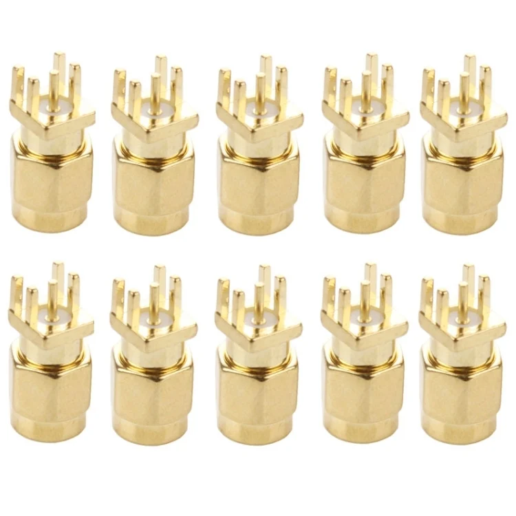10 PCS Gold Plated SMA Male Jack Socket PCB Edge Mount Solder 0.62 inch RF Connector Adapter