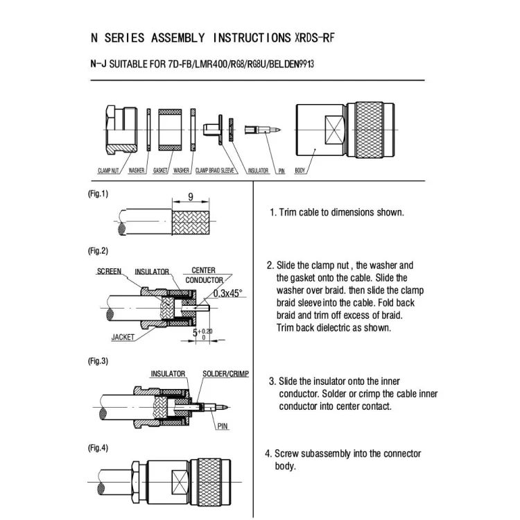 N Female Jack Crimp Connector For LMR400 / Belden 9913 / RG8 Cable