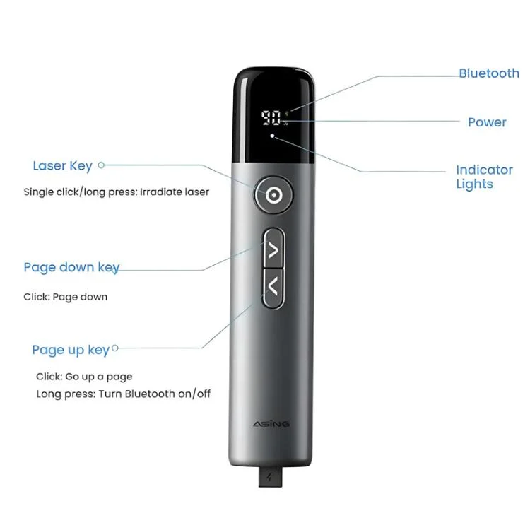 ASiNG A17 Pro Dual Mode Wireless Laser Presentation Pointer – USB/Bluetooth Rechargeable Adjustable Brightness