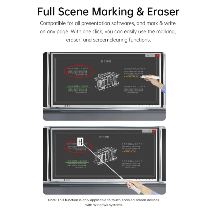 3. Full-scene annotation eraser: No software restrictions, you can annotate and write on any page, and you can call up the brush, eraser, and screen clearing functions with one click (this function needs to be used on a Windows system touch-enabled device)