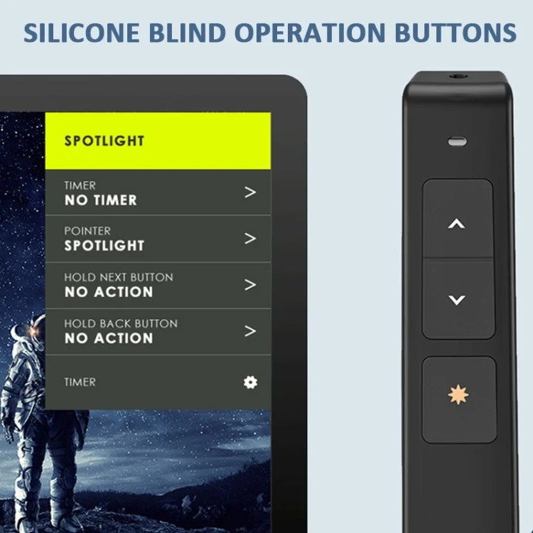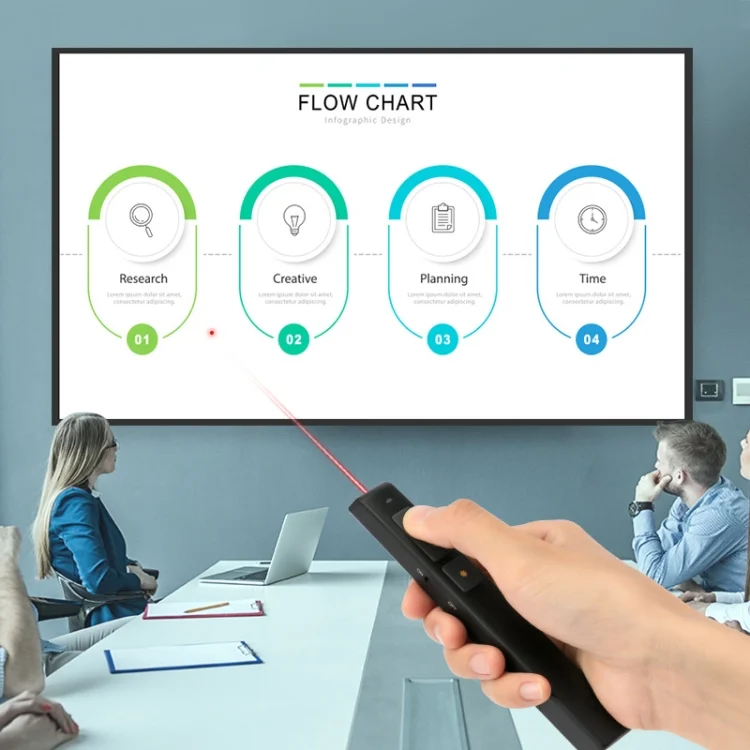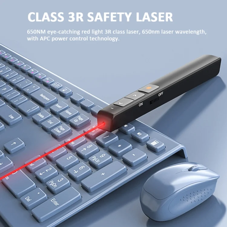 1. The laser pointer adopts RF2.4GHz wireless transmission technology, plug and play, and has good stability.